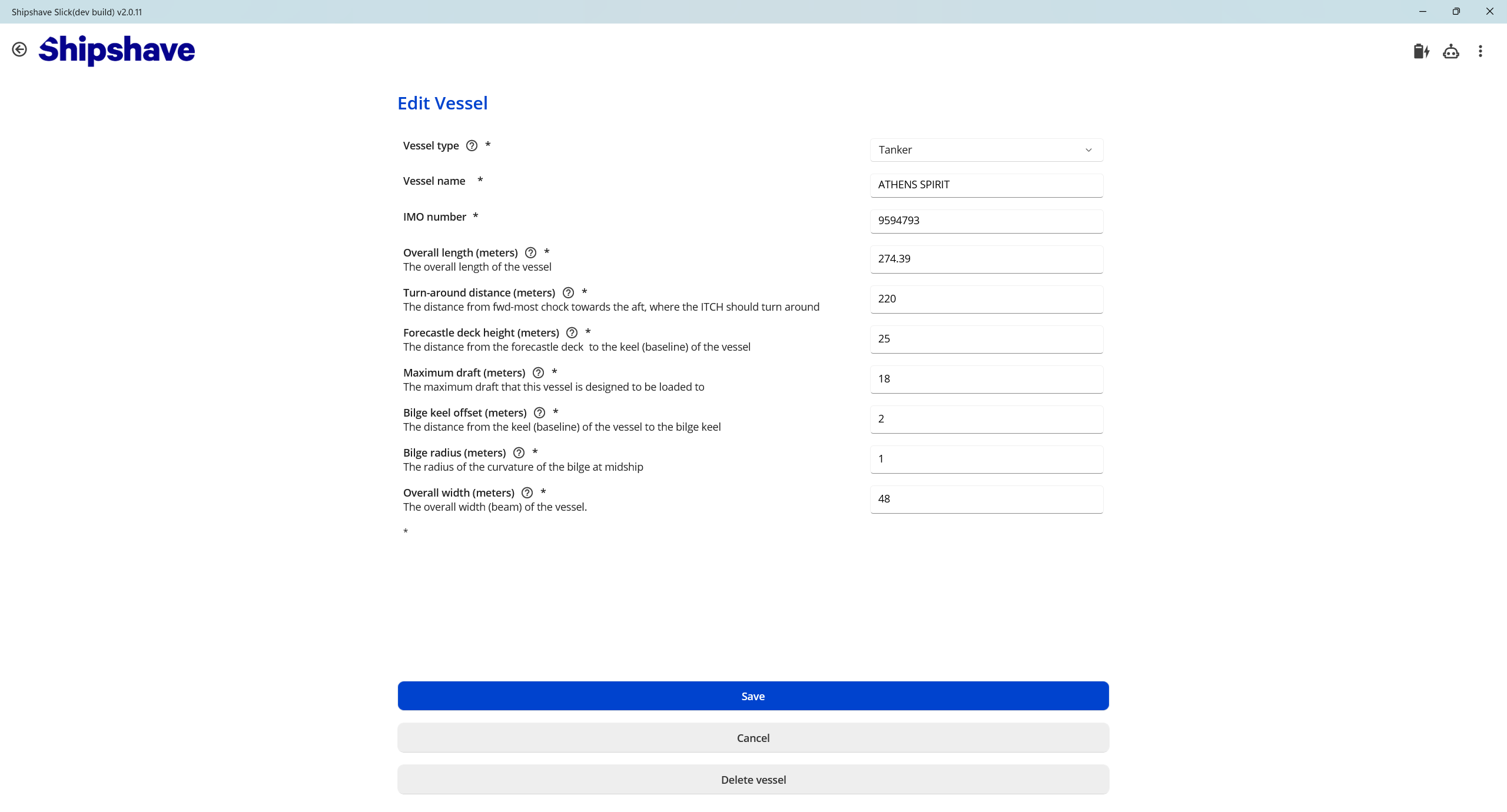 As an experimental feature, Developer mode allows users to delete a vessel and all its related data. To delete a vessel, go to "Edit vessel" from any of the available entrypoints.