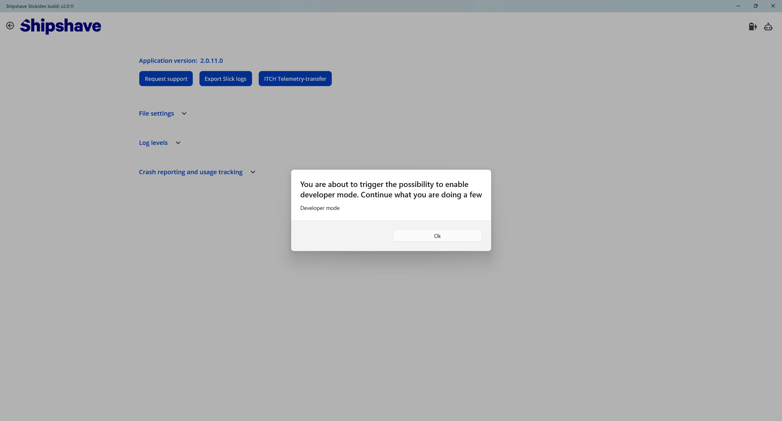 Click the "File settings" expand option 5 times. A warning will appear indicating you are about to enable "Developer mode".